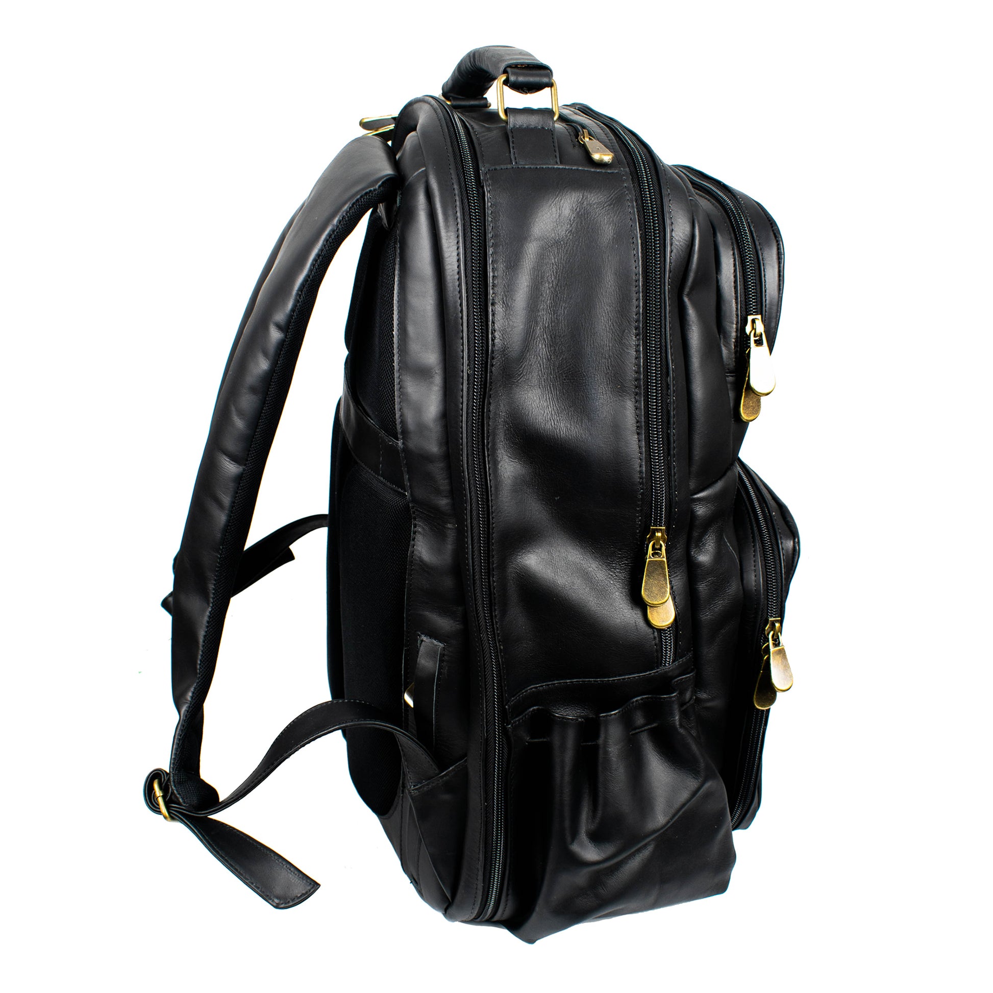 Soualiga Black Full Grain Leather Backpack
